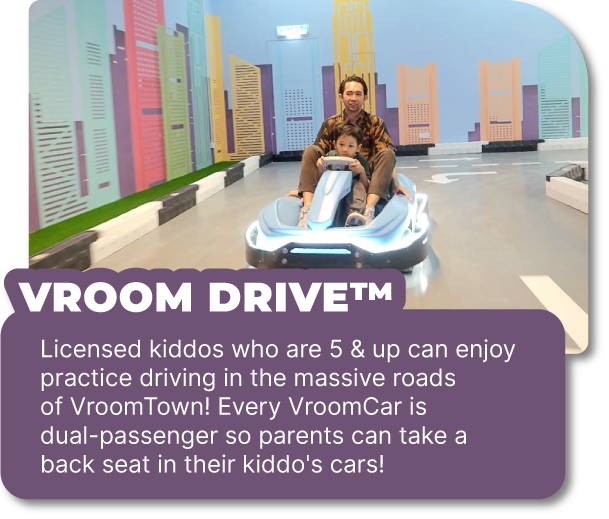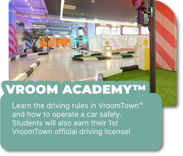 All first-time drivers should book our ‘Learner Pass’ below and undergo our ‘Basic Driving & Road Safety Lesson’. Thereafter, you can have fun driving freely in VroomTown™!